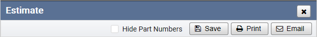 - Use the Hide Part Numbers checkbox to hide or show part numbers on the estimate.
