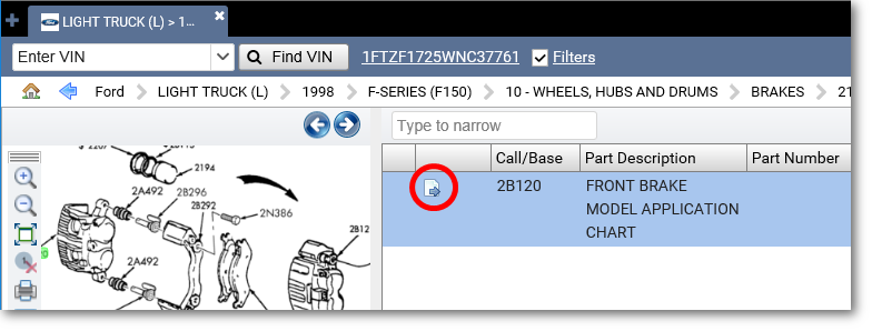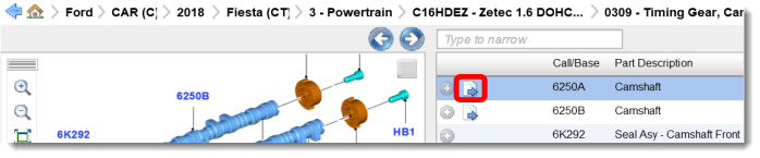 - The EPC will show you the relevant Side-by-side display with that base number. Click the Parts List icon