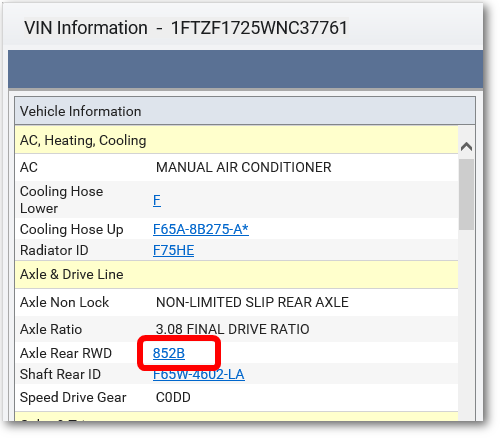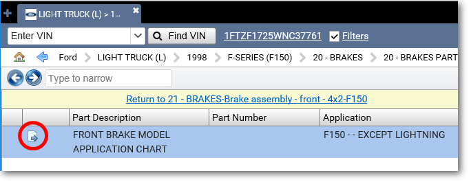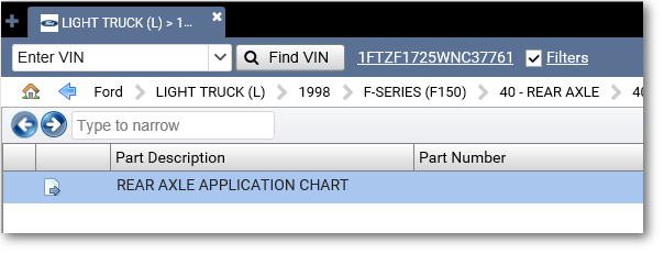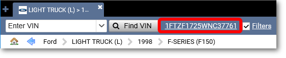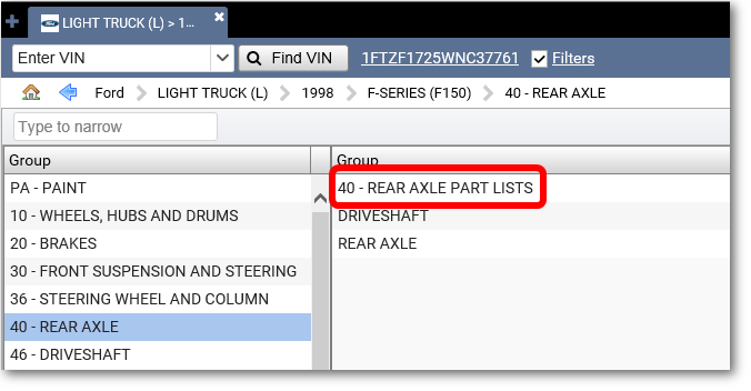 After entering a VIN for an older vehicle, there are a few ways to get to a Ford parts list.