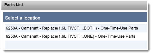 EPC 5 for Ford alerts you when a repair includes One-Time Use parts, which must be replaced and not put back on the vehicle. Note: You must enter a VIN in order to see One-Time Use parts.