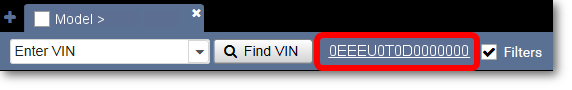 When a VIN is active, parts that do not apply to the VIN are filtered out. To view an unfiltered list of parts, click the Filters or Filters ON checkbox to turn filtering off.
